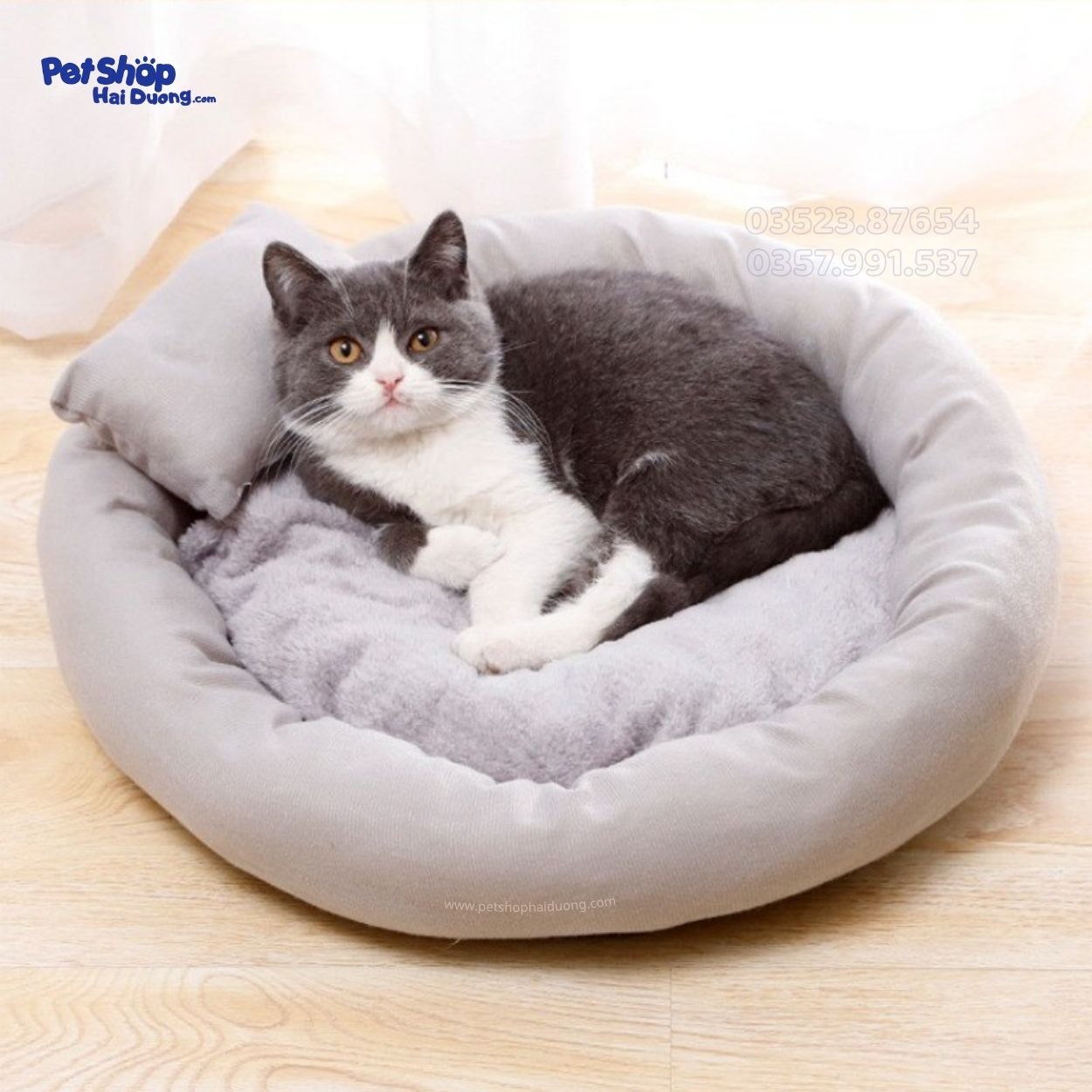 Đệm xám tròn kèm gối là món đồ lý tưởng giúp chó mèo có một giấc ngủ ấm áp và thoải mái trong mùa đông. Thiết kế dạng tròn ôm sát mang lại cảm giác an toàn như chiếc “tổ ấm” thu nhỏ, giúp thú cưng thư giãn và ngủ sâu hơn.